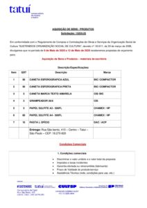 Descrição: Aquisição de materiais de escritório para abastecimento do estoque do conservatório de Tatuí.
